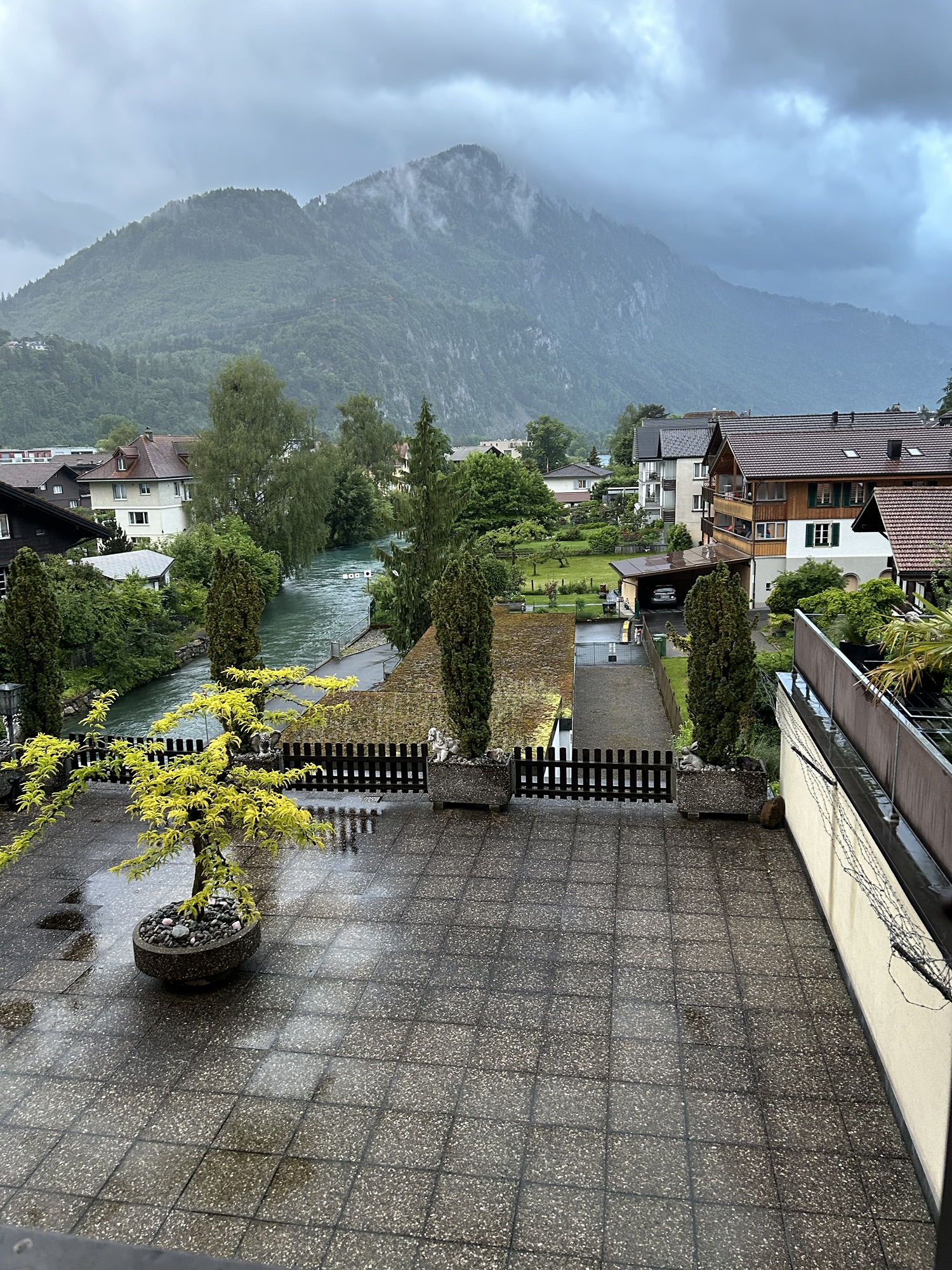 We arrived at Interlaken West at 8:10pm, where it was raining pretty steadily, but we followed Therese’s clear instructions and easily found our AirBnB through the rain.